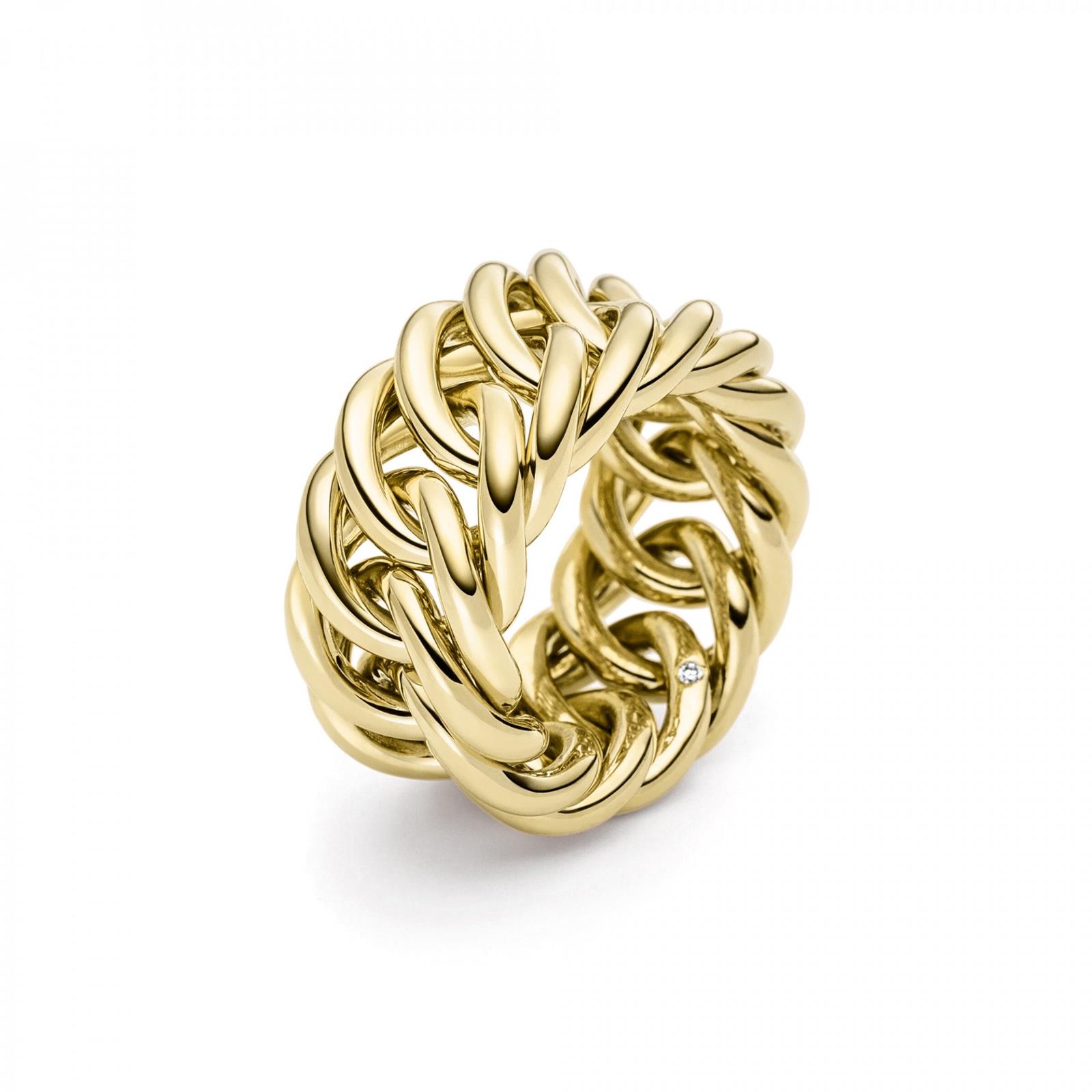 This special chain ring has show effect and feels soft to the touch. Its creation is very demanding, as it is a double chain. Instead of the two chain elements, this masterpiece always has four chain elements joined together. The width is about 13 mm. The ring’s band conceals a little 0,01 ct. diamond (G/VVS-VS), whose existence is known only to the ring’s wearer – a typical feature of IsabelleFa. The ring can be made to order in various sizes.