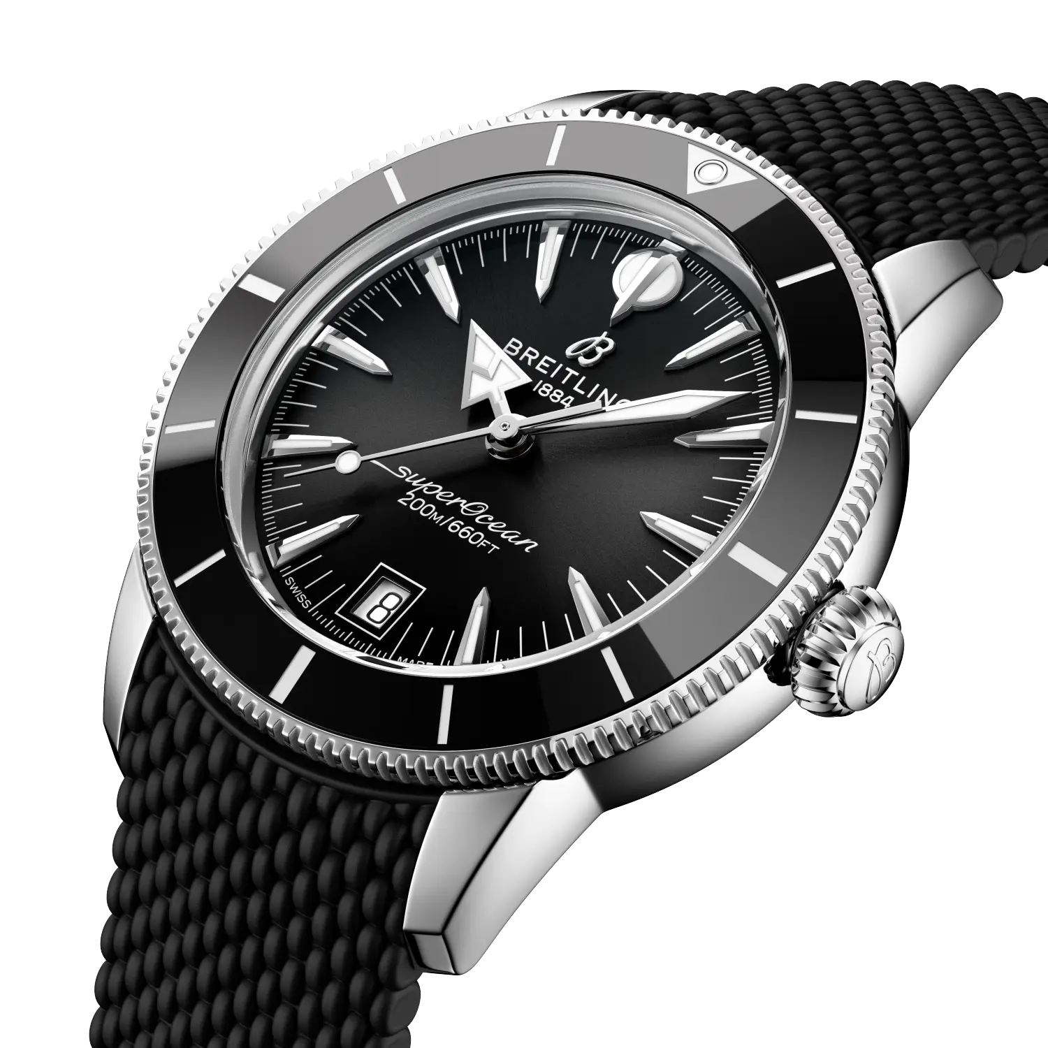 Made to move between the waves and the waterfront. The Superocean Heritage is no ordinary sea watch—it never was. When Breitling first launched it in 1957, it took a different tack from other dive watches of the era. The Ref. 1004 (a sleek time-only piece) and Ref. 807 (the world’s first dedicated dive chronograph) weren’t just about exploring the underwater world—they were about looking good doing it. The spear-and-arrow hands, anodized rotating bezel, and naturally sleek proportions made it a favorite of stylish adventurers who lived for the sea and the scene. Today, that philosophy is still at the core of the Superocean Heritage. It’s got the soul of the 1950s, but designed for today. The latest Superocean Heritage builds on everything that made the original distinctive—and sharpens it. The collection introduces the B31 automatic movement, Breitling’s first exclusive three-hand manufacture caliber. A ceramic-inlayed bezel adds exceptional scratch resistance, while integrated mesh-metal or mesh-rubber bracelets fit snugly against the case, secured with folding clasps for a clean, watertight finish. A discreet date window at six o’clock and the original signature hands—arrow for hours, spear for minutes—ensure legibility and balance, above or below the surface.