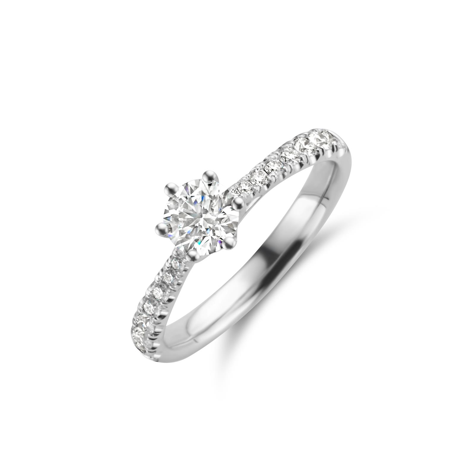 Whitegold solitaire with a 0.27ct D/VVS1 brilliant cut centre stone (GIA certificate) and 0.07ct F/VS brilliant cut entourage diamonds.