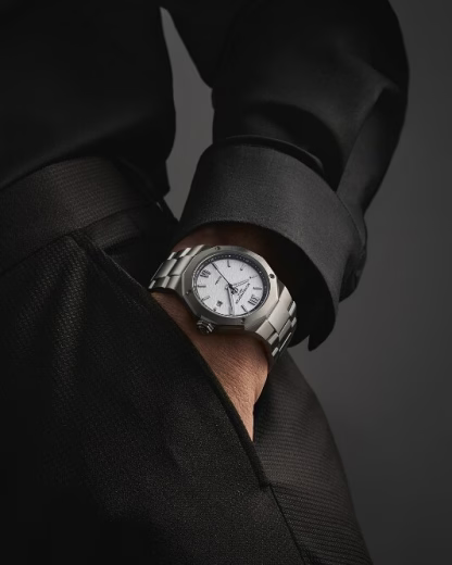 The Riviera 10829 is distinguished by a black and white contrast that is both bold and harmonious. Its white dial with a wave decor is highlighted by a black bevel. The riveted Roman numerlas, indexes, and faceted rhodium-plated hands are coated with white Superluminova. The black seconds hand with Phi logo on the counterweight accentuate this two-tone design. It is equipped with an automatic SW200 movement with a 38-hour power reserve and water resistance to 10 ATM. The interchangeable stainless-steel bracelet features a reliable system for tool-free changes.