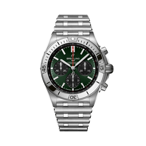 Breitling’s all-purpose watch for your every pursuit. The Chronomat holds a significant place in Breitling’s history. Introduced in 1984, at a time where extra-thin quartz timepieces were the order of the day, Breitling placed a bold bet on an impressively proportioned mechanical watch. Based on the Frecce Tricolori chronograph, which had been developed and launched in 1983 in collaboration with the famed Italian aerial squadron, the Chronomat celebrated Breitling’s centenary in style and marked the return of the mechanical chronograph to its rightfully prominent place at the brand which had built its global reputation on these incredible watches. Available in a variety of materials from stainless steel to luxurious 18 k red gold, the Chronomat features a 42 mm case and the iconic bezel with the four rider tabs. Available in a range of colorful dials, the Chronomat is matched to the signature “Rouleaux” bracelet in metal or rubber and is powered by the in-house Breitling Manufacture Caliber 01, a COSC-certified chronometer.